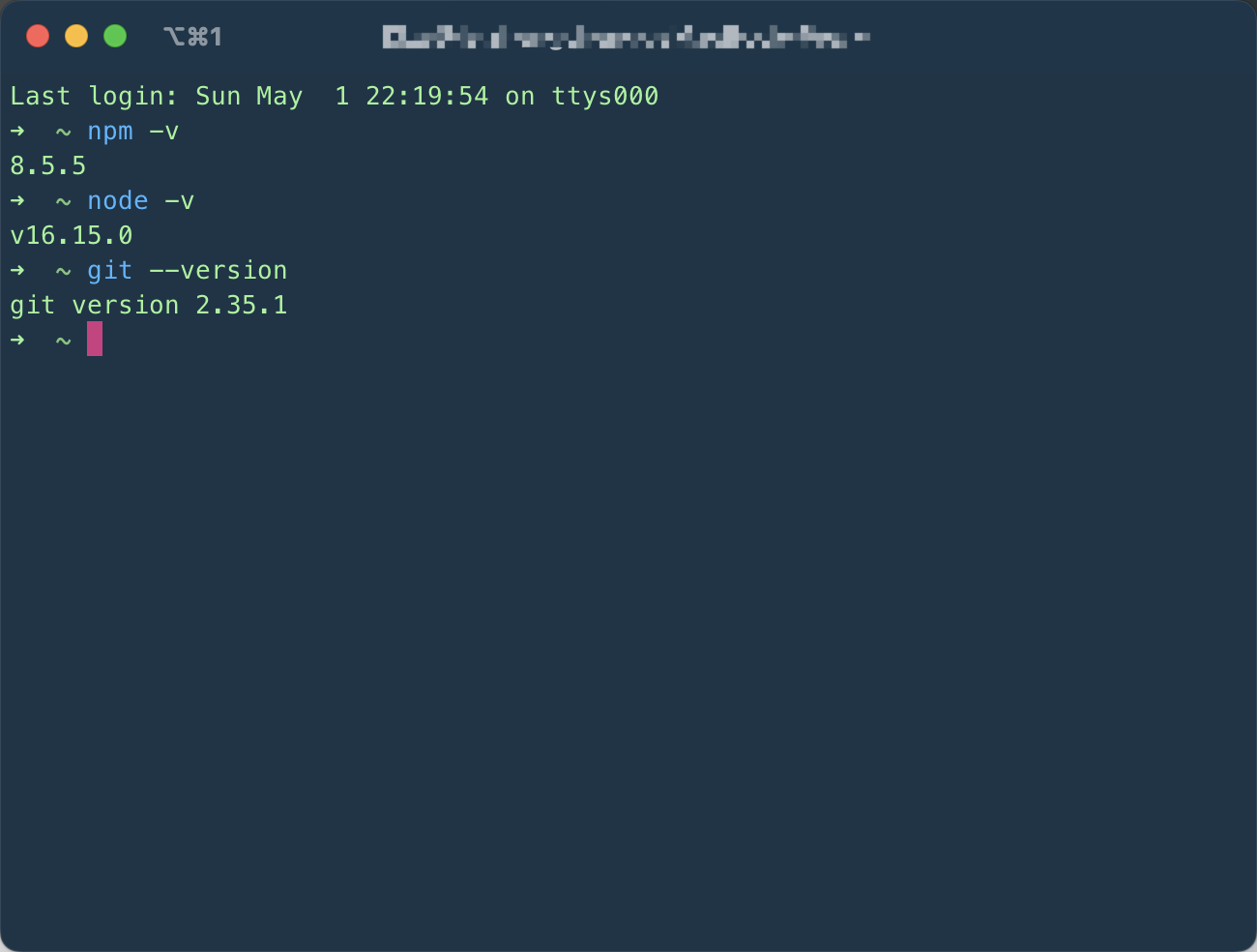 出现npm、Node.js和git的版本号即代表安装成功。
