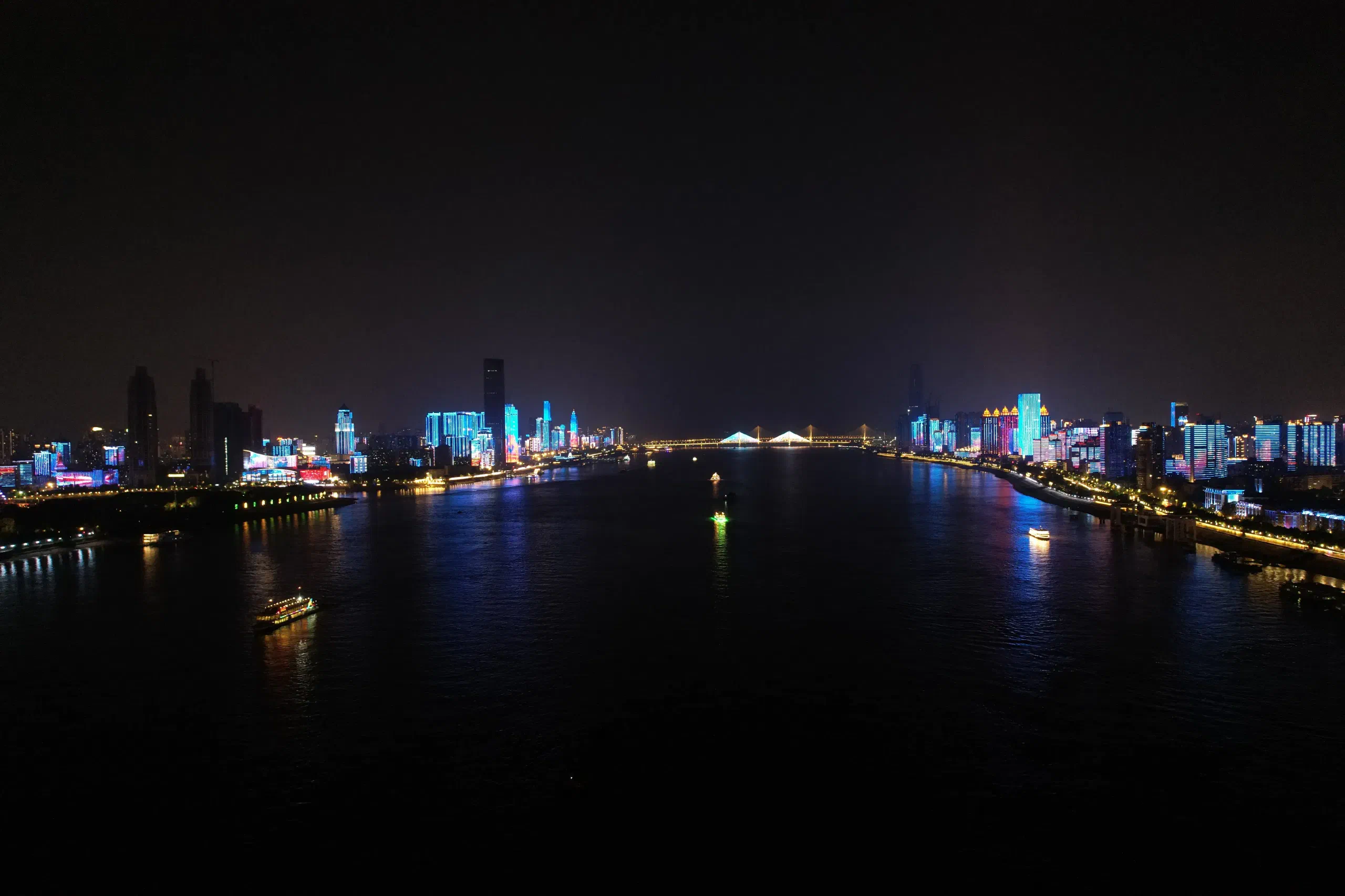 那張CG我找不到了,並且這個還是夜景,這是在長江一橋的江中心位置拍攝的,當然,是用無人機。